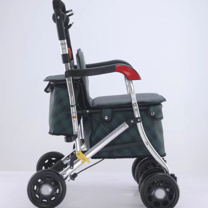 安定感のある六輪構造を採用した折りたたみ式のシルバーカーです。 座面とクッション付き背もたれで休憩時も快適に過ごせます。 前面には便利な収納袋を装備し、お買い物や散歩の荷物をしっかり収納できます。 折りたたみ機能により保管や持ち運びにも便利で、使わない時はコンパクトに収納可能です。 ハンドルは握りやすく、日常の外出をしっかりサポートします。