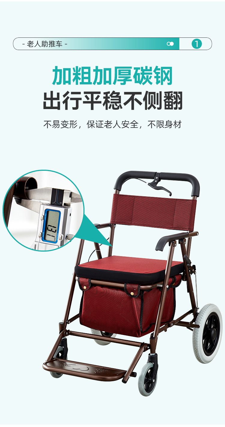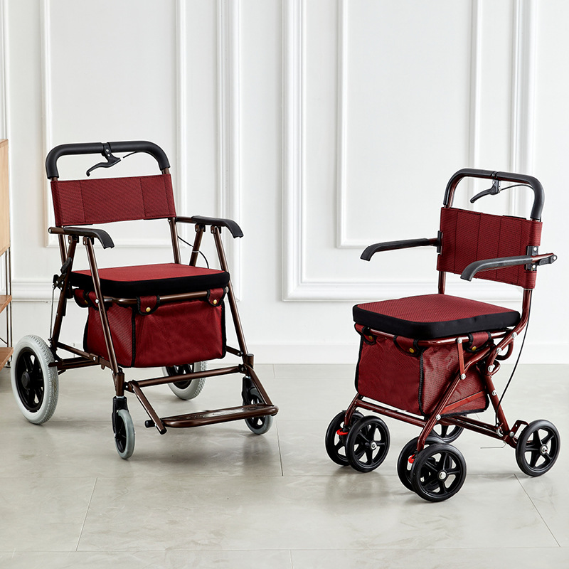 座り心地の良いクッション座面を備えた多機能なシルバーカーです。