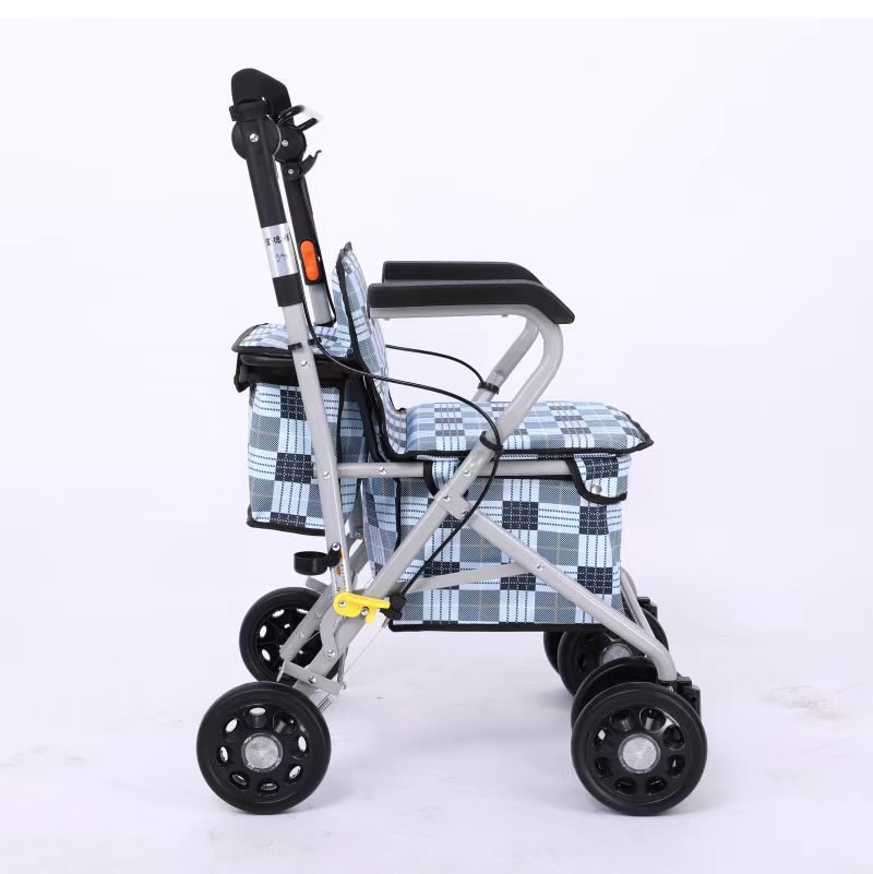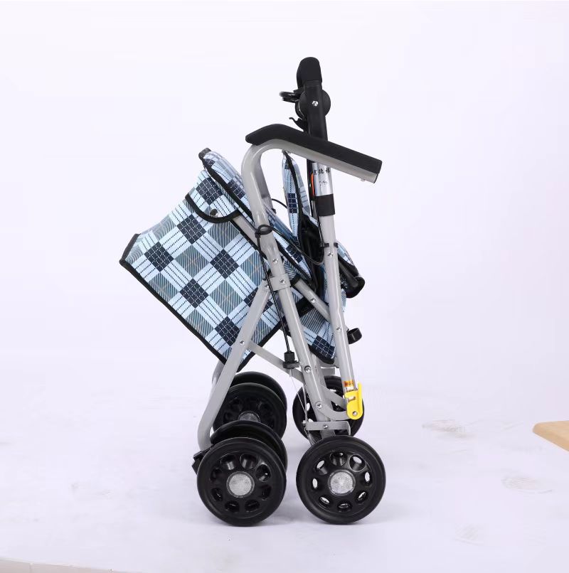 軽量アルミフレームを採用した折りたたみ機能付きシルバーカーです。 座面にはクッション性のある生地を使用し、長時間の外出でも快適に休憩できます。 大容量の収納バッグが付いており、お買い物や散歩に便利です。 前輪は二輪構造で小回りが利き、狭い道でもスムーズに移動できます。 折りたたみ時はコンパクトになり、玄関や車のトランクにも楽々収納可能です。