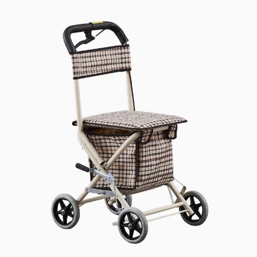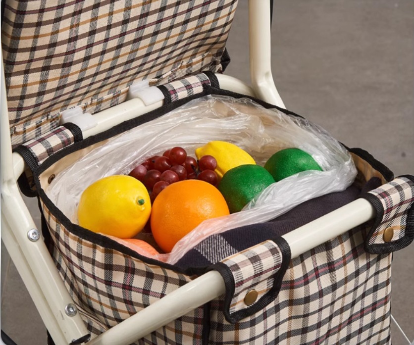 お出かけの休憩に便利な座面付きのシルバーカーです。