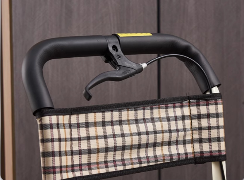 四輪タイプで安定感があり、手元のブレーキで安全に操作できます。