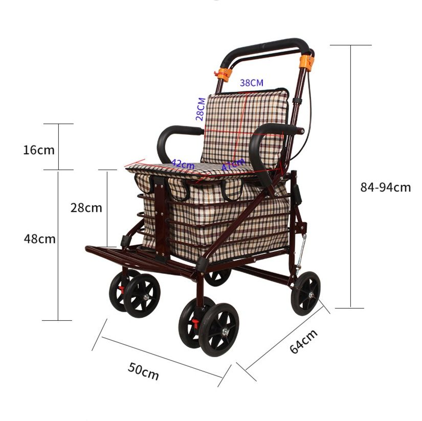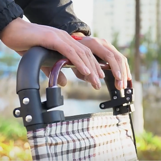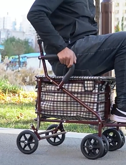 座面付きで疲れたときに休憩できる折りたたみ式のシルバーカーです。