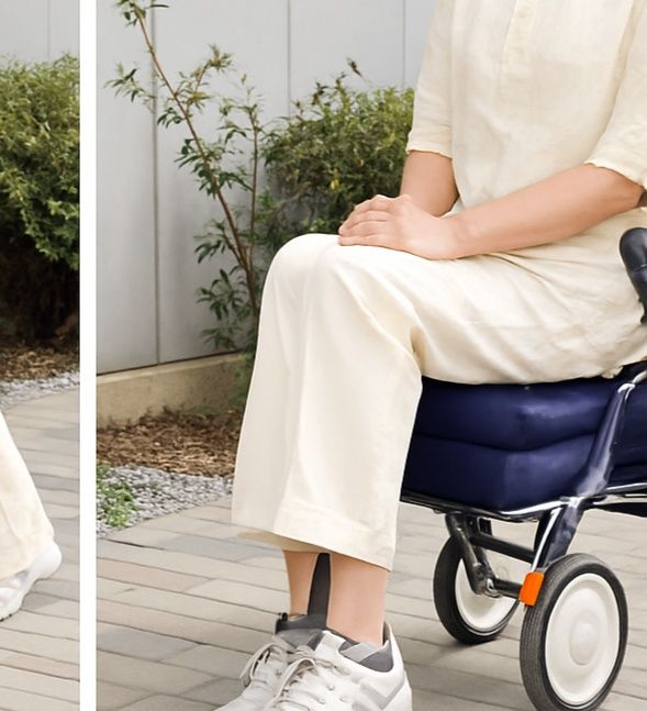 安定感のある四輪設計で、散歩や買い物など日常の外出を安全に快適にサポートする座れるシルバーカーです。