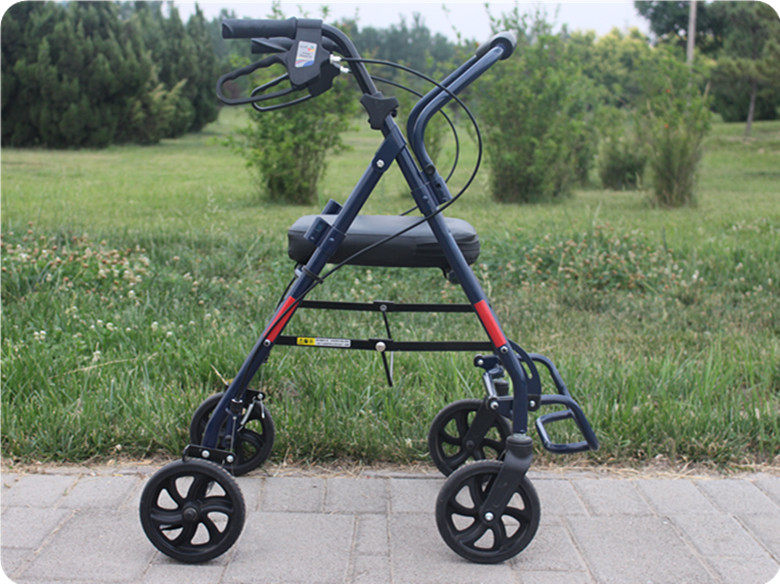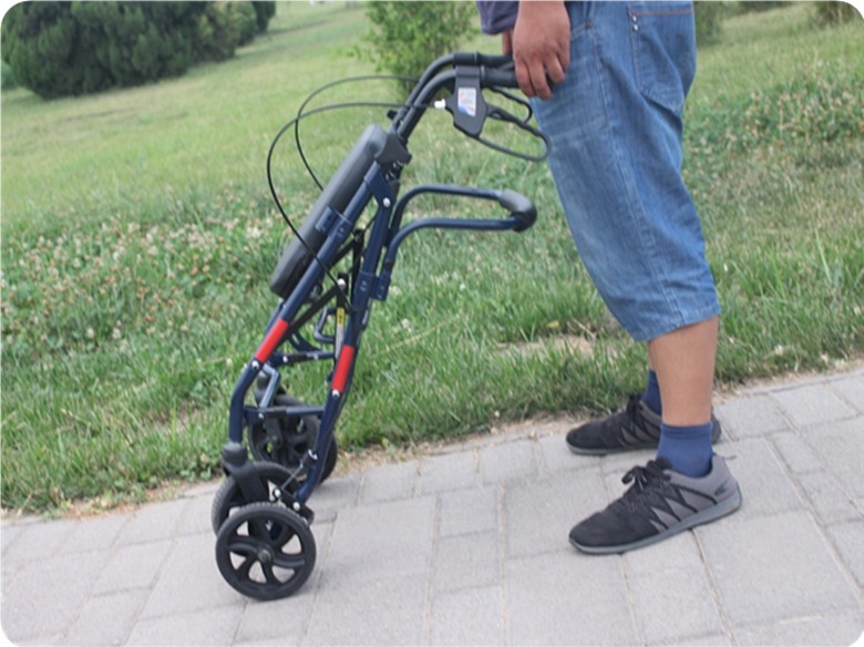 手元のブレーキで簡単に速度調整ができ、疲れたときはいつでも座って休憩できる多機能設計です。
