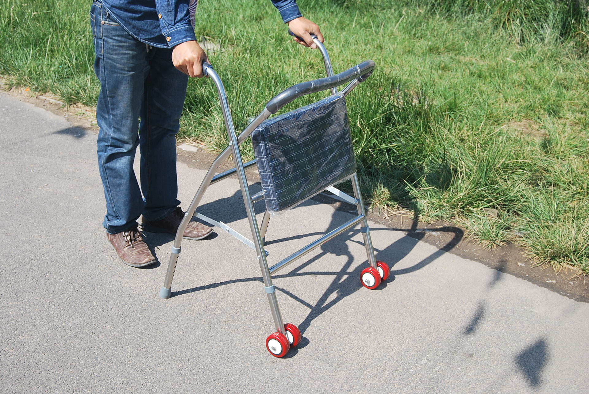 座面付きで疲れた時にはいつでも休憩でき安定感のある四輪設計で安心してお使いいただけます。