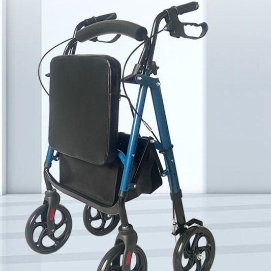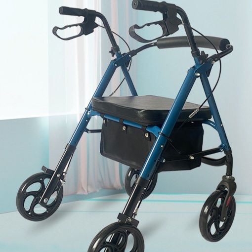 安定感のある四輪設計と快適な座面を備えたシルバーカーです。