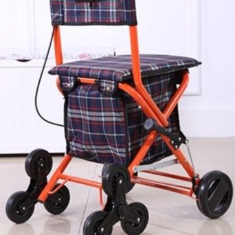 座面とキャリーバッグを備えた多機能なシルバーカーです。